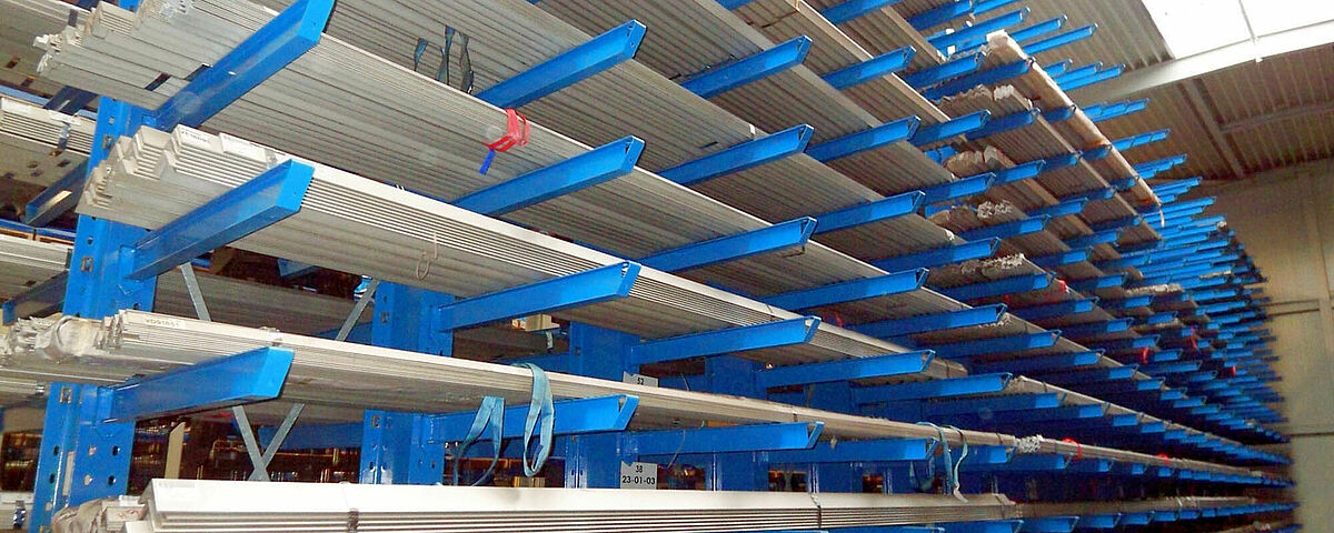 Not only heavy and bulky goods can be stored in our cantilever racking – light loads can also be stored efficiently. Whether wooden strips, metal pipes, or other elongated objects: Our high-quality shelving systems offer flexible storage options.