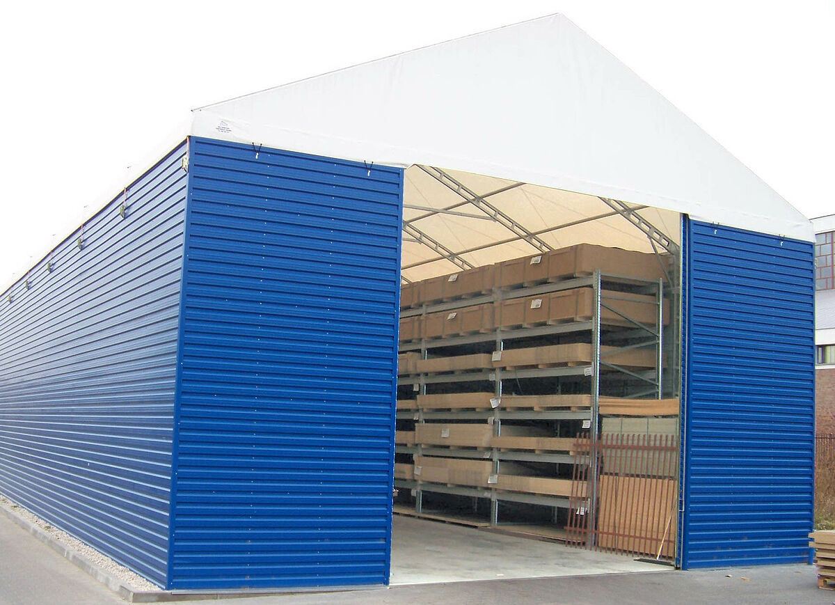 Damar's first investment in OHRA racks was made six years ago. Impressed by the quality, Damar has now also equipped its newest warehouse with pallet racks from the specialists for cantilever and pallet racks based in Kerpen, Germany. Chipboards of 2070 x 2800 mm in size are stored in packages weighing up to 1800 kg. The exceptional thing about all this: the storage facility was set up in a large marquee tent. The high flexibility of shelving solutions from OHRA made itself felt, because to make the best use of the space, the distance of the rack frames was adapted exactly to the frame design of the marquee. To this end, OHRA has changed the length of the longitudinal beams to 2950 mm, so that the frames of the chipboard rack are located just before the ceiling supports of the marquee roof – so that the space available can be used optimally.